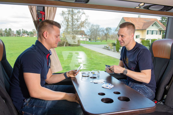 Miete den Casa Nero Eventbus für unvergessliche Partys, Firmenanlässe und Gruppenausflüge in der ganzen Ostschweiz. Auch für Touren ins Ausland sind wir unterwegs – zum Beispiel nach Deutschland, Österreich, Frankreich oder sogar bis nach Spanien. Jetzt mehr Infos über die Ausstattung entdecken.